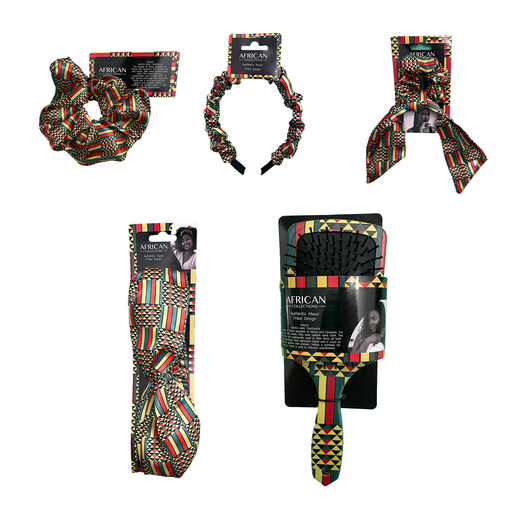 Discover our African-inspired hair accessories, featuring bold prints and vibrant color. From headbands to scrunchies, each piece blends cultural inspiration with everyday style.
